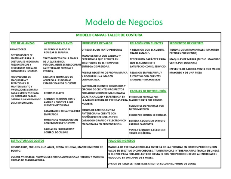 Ejemplo De Modelo Canvas De Una Empresa De Ropa Compartir Ejemplos