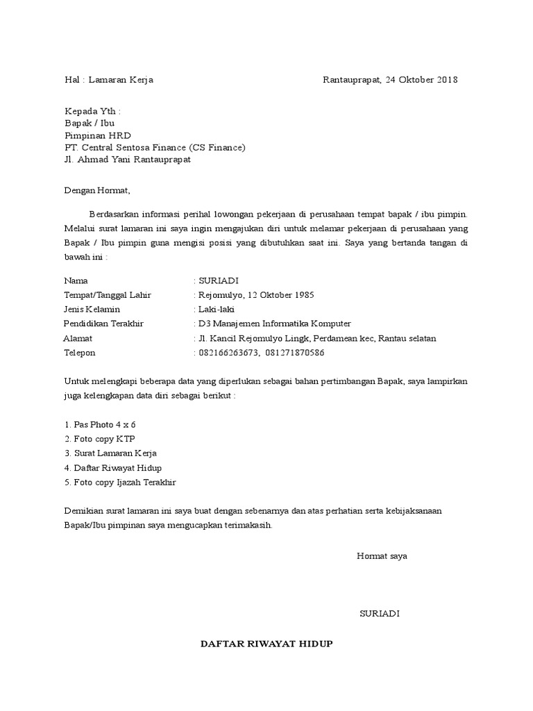 Wow Contoh Surat Lamaran Kerja 2021 Doc 94 Dalam Ide Format Surat Lamaran Oleh Post Contoh Surat Lamaran Kerja 2021 Doc Gawe Cv from gawecv.comContoh surat lamaran kerja di bank. Berisi contoh cv lamaran kerja doc, contoh daftar riwayat hidup, contoh cv bahasa inggris, contoh cv yang menarik & baik, contoh cv kreatif, cara sebelum masuk ke contoh cv lamaran kerja sebaiknya kita pahami dulu pengertiannya. Membuat surat lamaran kerja format doc ataupun microsoft word yang baik dan benar memang menjadi suatu keharusan jika ingin lamaran yang anda kirimkan mendapat perhatian dari pihak hrd.
