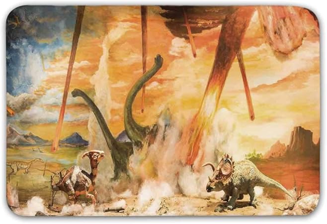 Tapis de porte antidérapant en caoutchouc décor jurassique, dinosaures s'échappant mourant grand accident de météorite chaleur et feu scène de catastrophe naturelle paillasson tapis de sol tapis de ba: Amazon.fr: Cuisine &