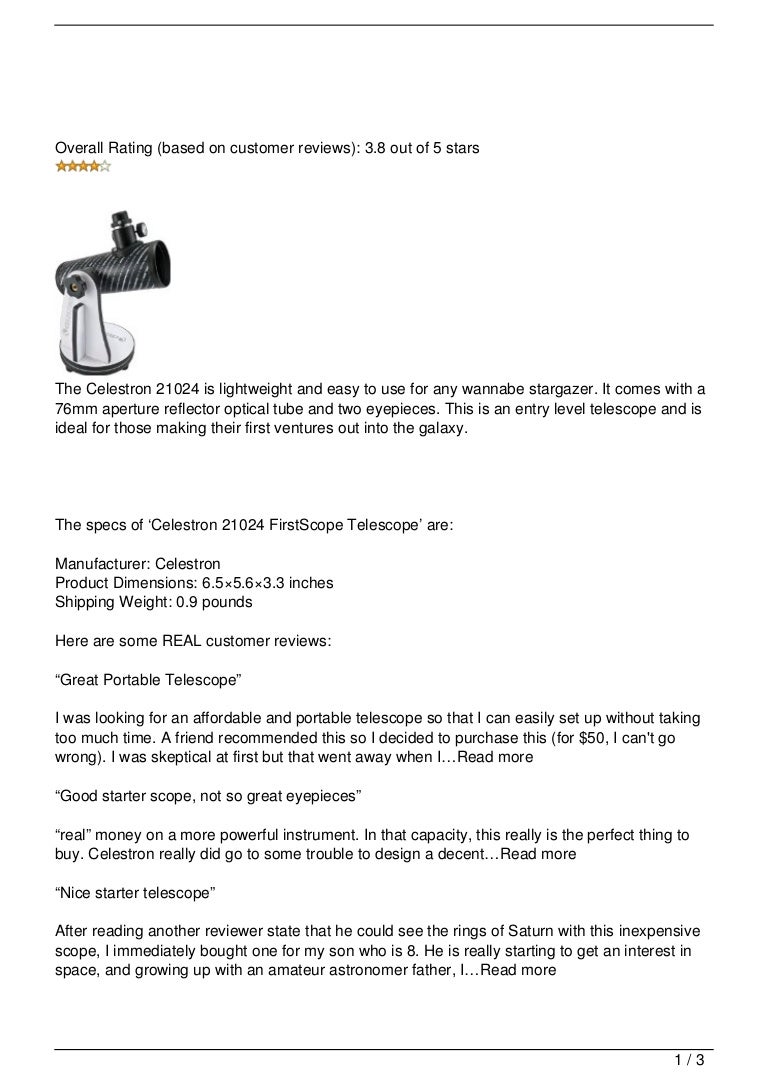 Celestron 21037 PowerSeeker 70EQ Telescope Review - [PDF Document]